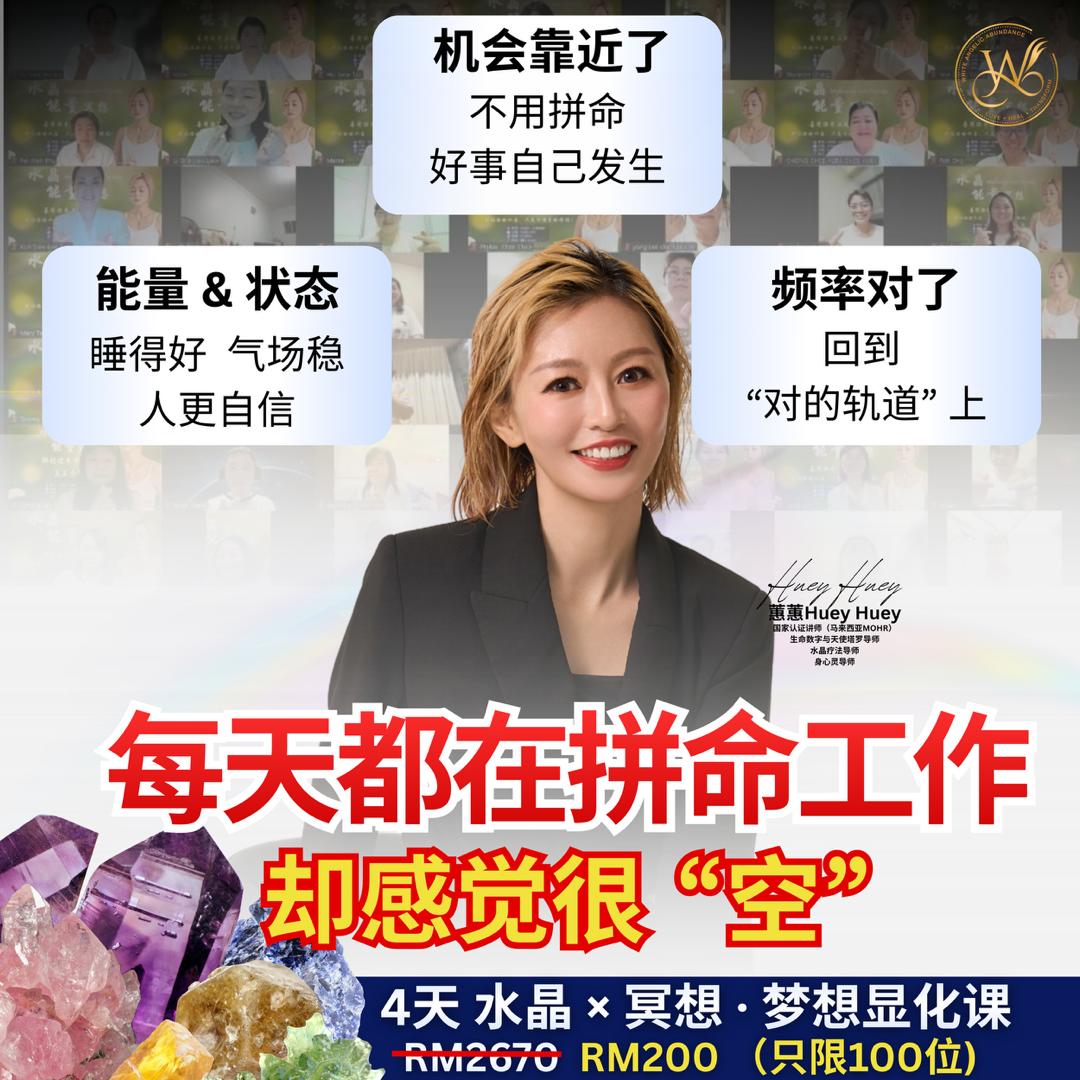 Huey 蕙蕙老师会亲自带领你,用 “能量 × 信念 ”去加速显化、提前实现愿望。